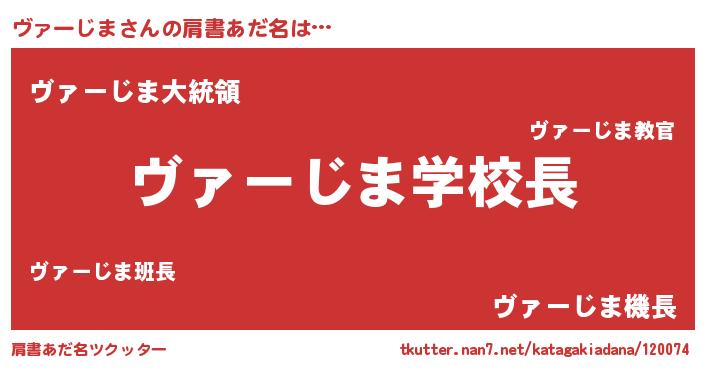 | ヒーロー風カッコイイあだ名 | 『正義の使者ヴァーじま』『仮面ヴァダー』 |