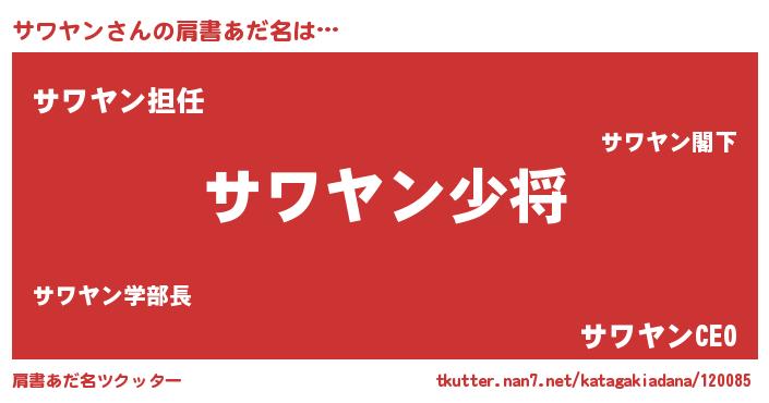 | 意味不明あだ名 | 『なめこ科サワヤン属』『自称サワヤン』 |