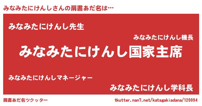 | 欧米人風あだ名 | 『みなみたにけんしクリステル』 |