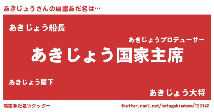 | ファンタジー風あだ名 | 『エターナルアキジョウー』『ゼアキトゥ』 |