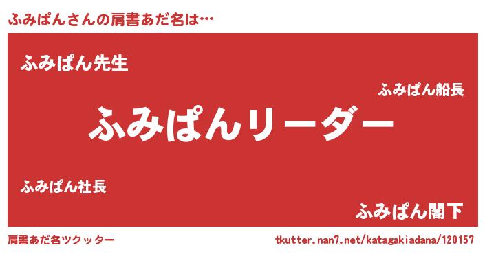 | 意味不明あだ名 | 『とにかく怪しいふみぱん』 |