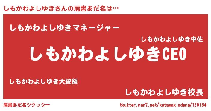 | ヒーロー風カッコイイあだ名 | 『スーパーシモカワヨシユキ』 |