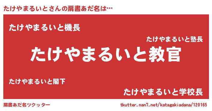 | ヘコむあだ名 | 『たけっちょ』『たけやまるいと(震え声)』 |