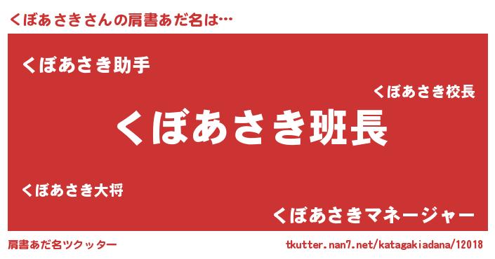 | ヒーロー風カッコイイあだ名 | 『天弓騎士クボ』『慈愛の使者くぼあさき』 |