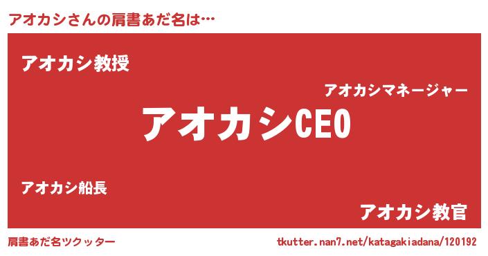 | ヒーロー風カッコイイあだ名 | 『スーパーアオカシ』『仮面アオダー』 |