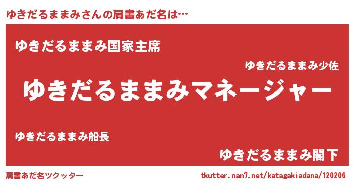 | 意味不明あだ名 | 『ゆきだるままみフォーエバー』 |