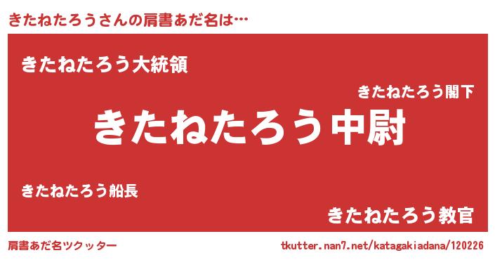 | 男性向けラノベタイトル風あだ名 | 『キタネタロウスレイヤー』 |