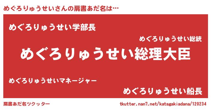 | 男性向けラノベタイトル風あだ名 | 『やはりめぐろりゅうせいの青春ラブコメはまちがっている 』 |