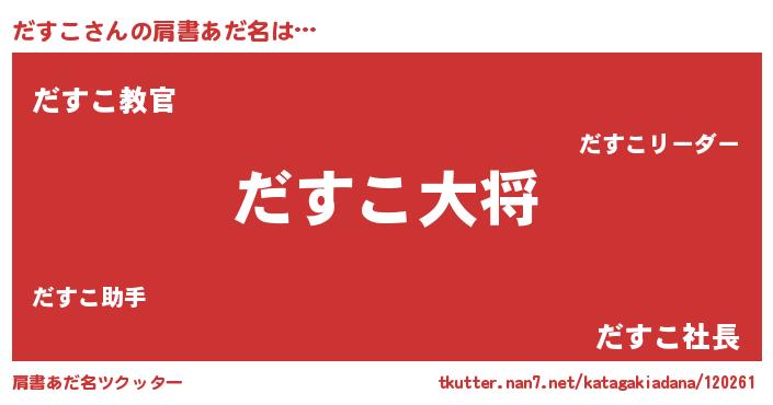 | 男性向けラノベタイトル風あだ名 | 『ダスコスレイヤー』『だすこの憂鬱』 |