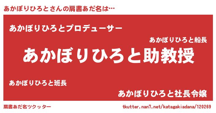 | 男性向けラノベタイトル風あだ名 | 『ノーゲーム・ノーアカボリヒロト』 |