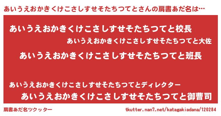 | 意味不明あだ名 | 『とにかく怪しいあいうえおかきくけこさしすせそたちつてと』 |