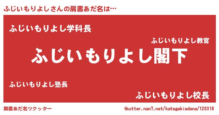 | ヘコむあだ名 | 『ふじいもりよし(笑)』『ふじっちょ』 |