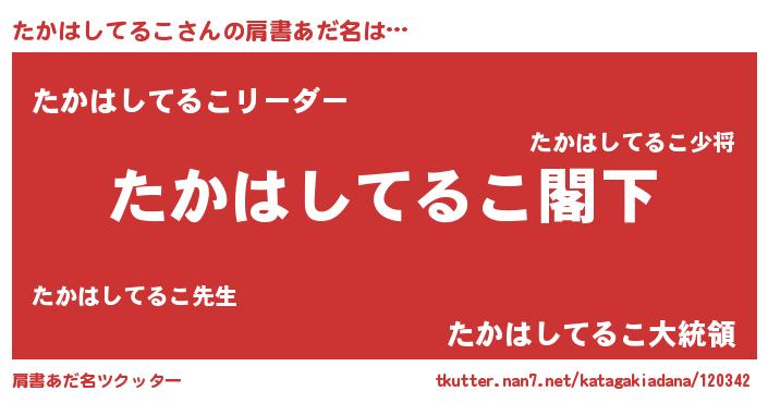 | ヒーロー風カッコイイあだ名 | 『最強戦士タカハシテルコ』 |