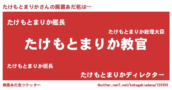 | 意味不明あだ名 | 『住所不定無職たけもとまりか(6歳)』 |