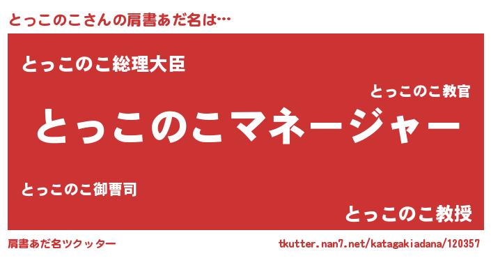 | 男性向けラノベタイトル風あだ名 | 『とっこのこに滅ぼされるだけの簡単なお仕事です』 |