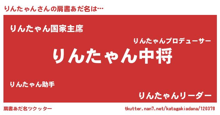 | 男性向けラノベタイトル風あだ名 | 『転生したらりんたゃんだった件』 |