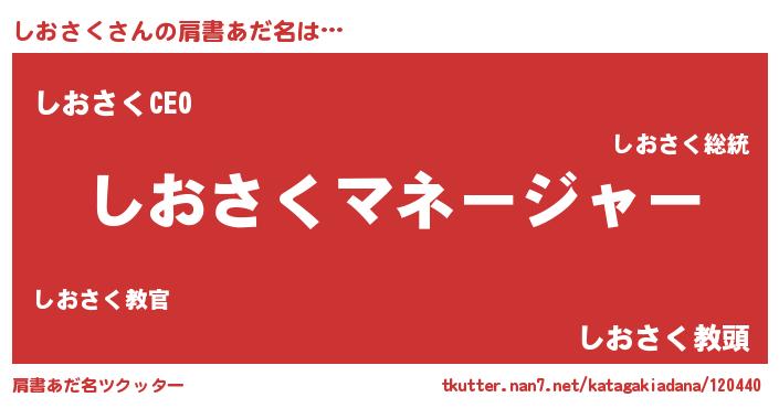 | ヘコむあだ名 | 『しおふぇ~』『しおさく(笑)』 |