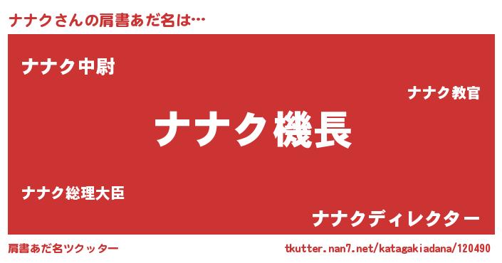 | ヒーロー風カッコイイあだ名 | 『仮面ナナダー』『ウルトラナナクマン』 |
