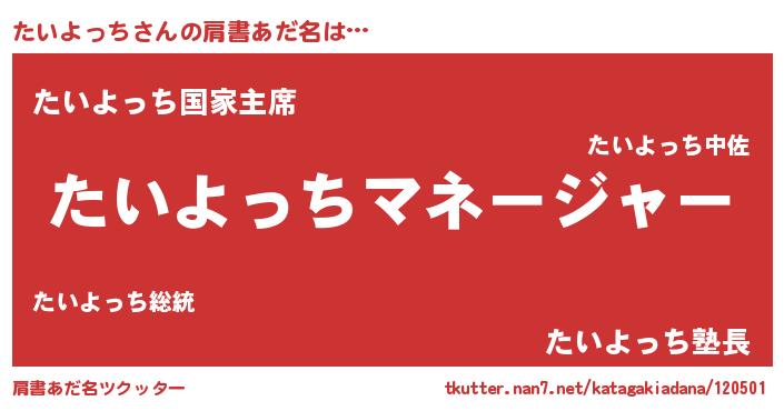| 男性向けラノベタイトル風あだ名 | 『たいよっちに滅ぼされるだけの簡単なお仕事です』 |
