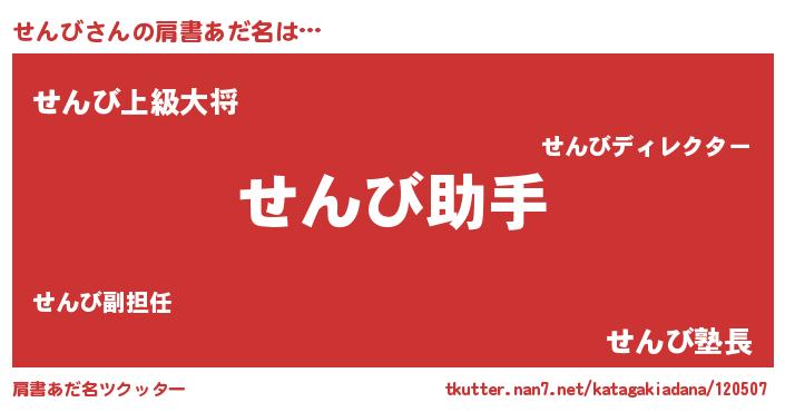 | ヒーロー風カッコイイあだ名 | 『慈愛の使者せんび』『銀牙騎士セン』 |
