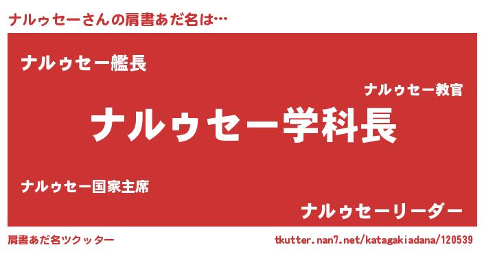 | 男性向けラノベタイトル風あだ名 | 『ノーゲーム・ノーナルゥセー』 |