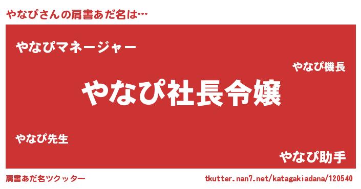 | 女子向けラノベタイトル風あだ名 | 『やなぴ姫と円卓の騎士』『やなぴ恋絵巻』 |
