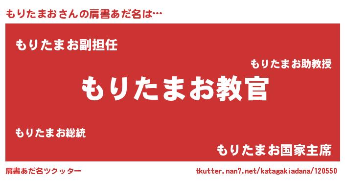 | ヒーロー風カッコイイあだ名 | 『仮面モリダー』『ネオモリタマオ』 |