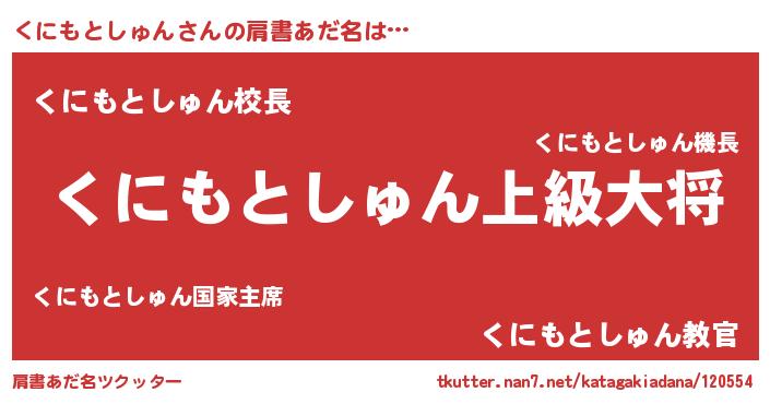 | 男性向けラノベタイトル風あだ名 | 『クニモトシュンスレイヤー』 |
