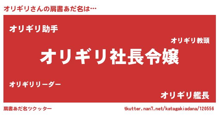 | 男性向けラノベタイトル風あだ名 | 『オリギリの憂鬱』 |