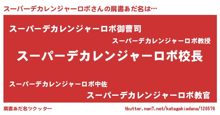 | ヘコむあだ名 | 『スーパーデカレンジャーロボ(笑)』 |