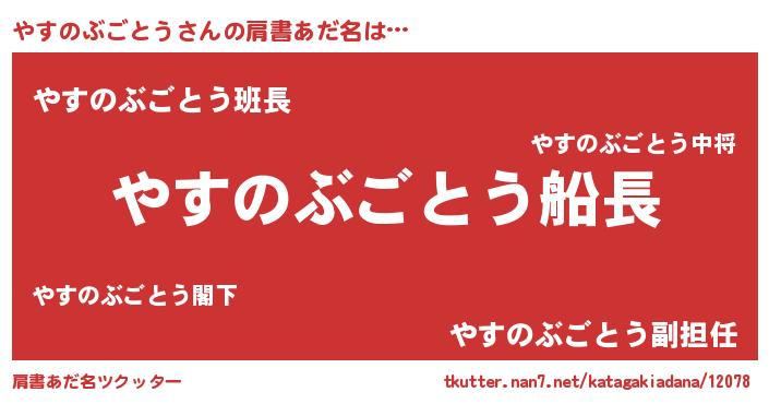 | 男性向けラノベタイトル風あだ名 | 『うちのやすのぶごとうが世界を掌握している!』 |