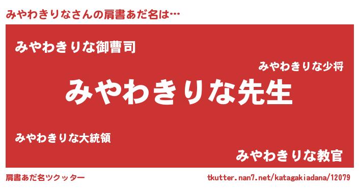 | 男性向けラノベタイトル風あだ名 | 『みやわきりなという概念が存在しない退屈な世界 』 |