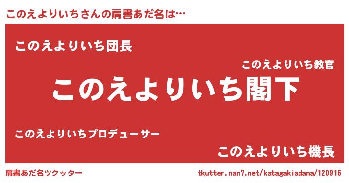 | 意味不明あだ名 | 『自称このえよりいち』 |
