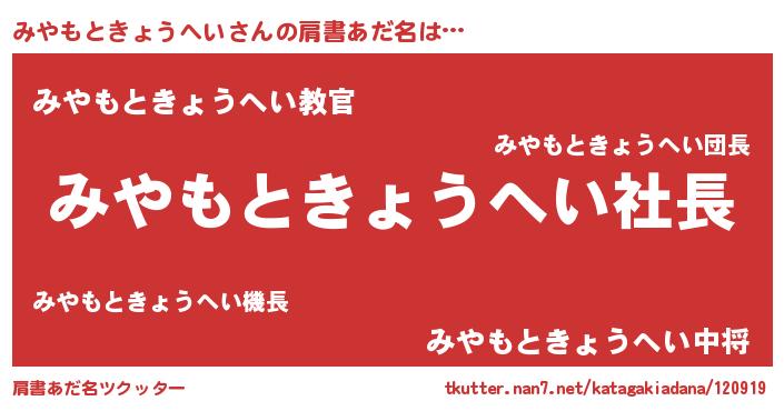 | 胡散臭い通販商品みたいなあだ名 | 『億万長者になれるブレスレット…その名も「みやもときょうへい」』 |