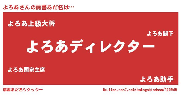 | 欧米人風あだ名 | 『アンジェラ・よろあ』『ダニエルよろあ』 |