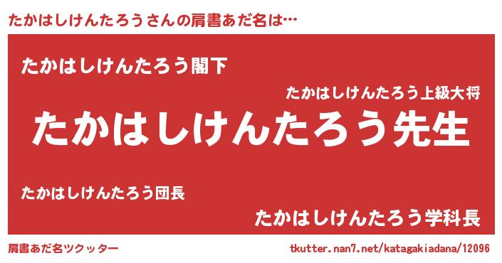 | ヘコむあだ名 | 『たかはしけんたろう(小並感)』『たかお』 |