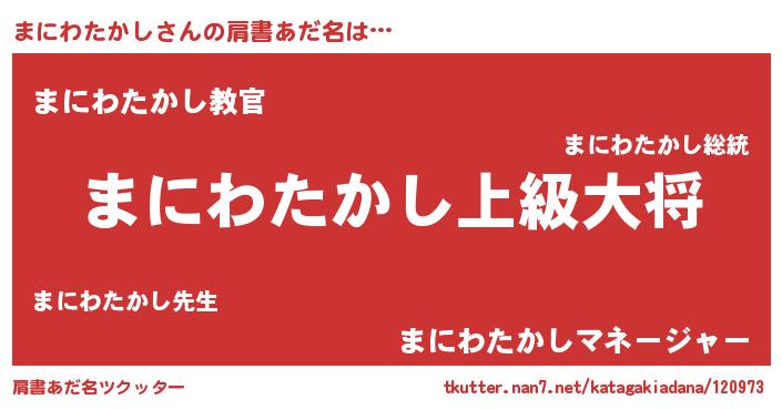 | 伝説のあだ名 | 『聞きしに勝る勇者まにわたかし』 |