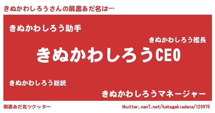 | ヒーロー風カッコイイあだ名 | 『スーパーキヌカワシロウ』 |