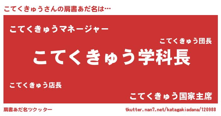 | 女子向けラノベタイトル風あだ名 | 『こてくきゅう恋絵巻』 |