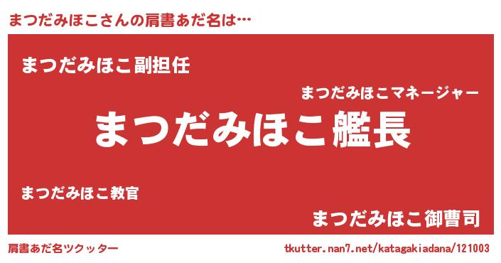 | ヘコむあだ名 | 『まつだみほこ(笑)』『まつっふぃ~』 |