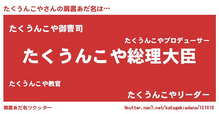 | 女子向けラノベタイトル風あだ名 | 『たくうんこやの雑貨屋さん』 |