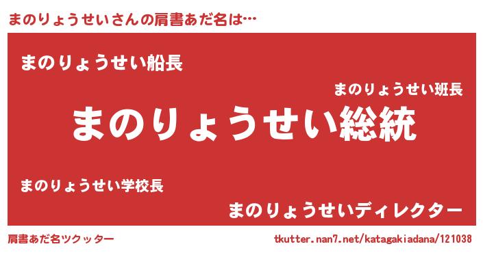 | 意味不明あだ名 | 『自称まのりょうせい』 |