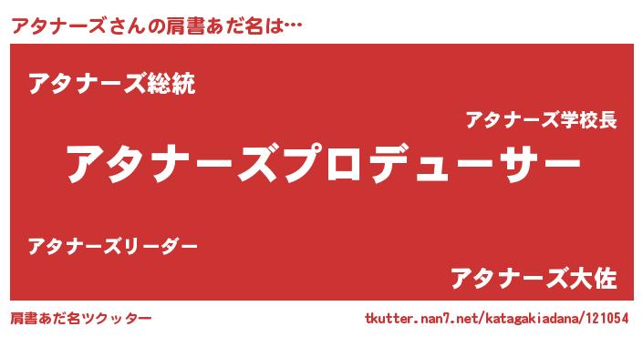 | 意味不明あだ名 | 『自称アタナーズ』 |