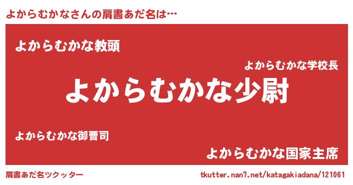 | ヘコむあだ名 | 『よからむかな(笑)』『牛乳』 |