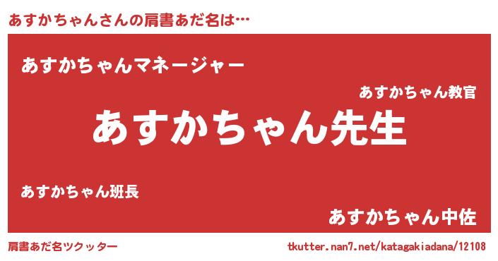 | 意味不明あだ名 | 『永久保存あすかちゃん』 |