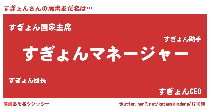 | 男性向けラノベタイトル風あだ名 | 『すぎょんに滅ぼされるだけの簡単なお仕事です』 |