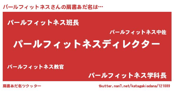 | 意味不明あだ名 | 『とにかく怪しいパールフィットネス』 |
