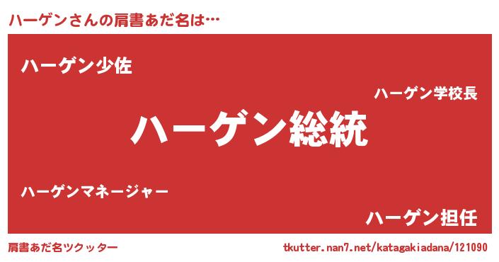 | ヒーロー風カッコイイあだ名 | 『超時空戦士ハーゲン』『ネオハーゲン』 |