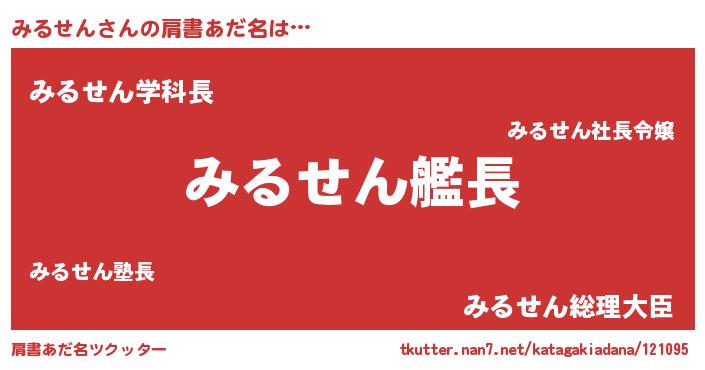 | 女子向けラノベタイトル風あだ名 | 『シンデレラみるせん家の靴箱館』 |