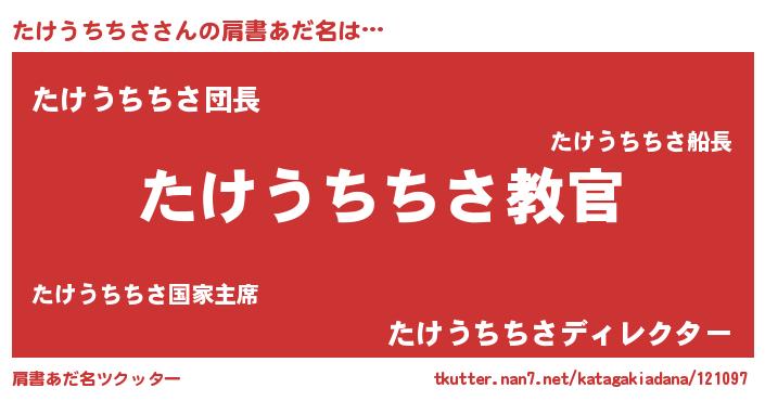 | ヘコむあだ名 | 『たけを』『なまこ酢』『たけもー』 |